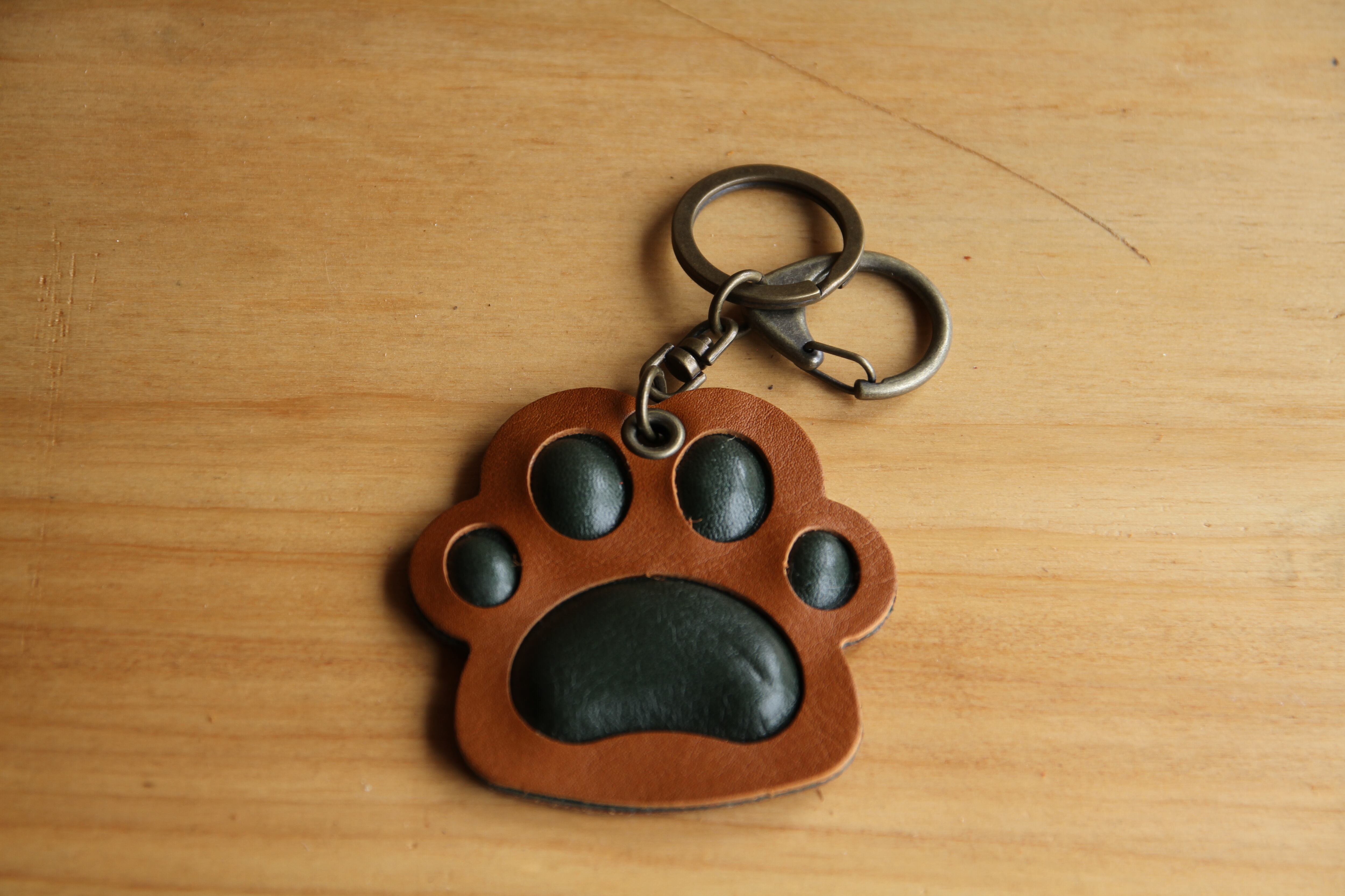 可愛らしい肉球のデザインが魅力の本革キーホルダー。手触りの良いぷよぷよ感がたまらなく、持つ度に癒しを感じられるアイテムです。手作りのため、一つ一つ表情や色味が異なり、世界に一つだけの特別感があります。バッグや鍵に付けて、日常の中に癒しと愉しみをプラスしてください。この肉球キーホルダーがあなたの毎日を楽しく彩りますように。